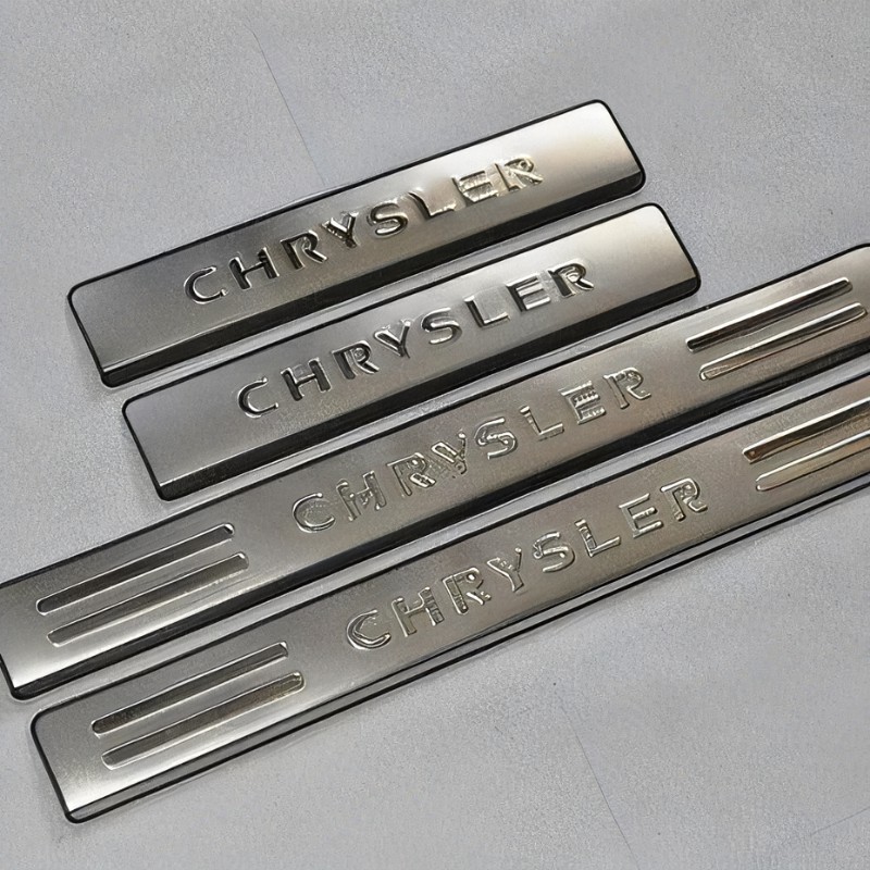 Stainless Steel Door Sill Scuff Plate Trim Letters and trim in BLUE