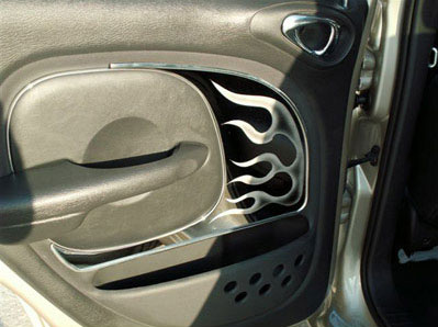 Finally what everyone has been asking for! Our flamed etched door panel kit designed to fit on all 4 doors of your PT Cruiser. These stainless door panels install with a 3M attachment tape included. This kit comes complete with our 8-pc Door Trim Kit making it an exceptional value. The kit will fit all 4 door Cruisers.